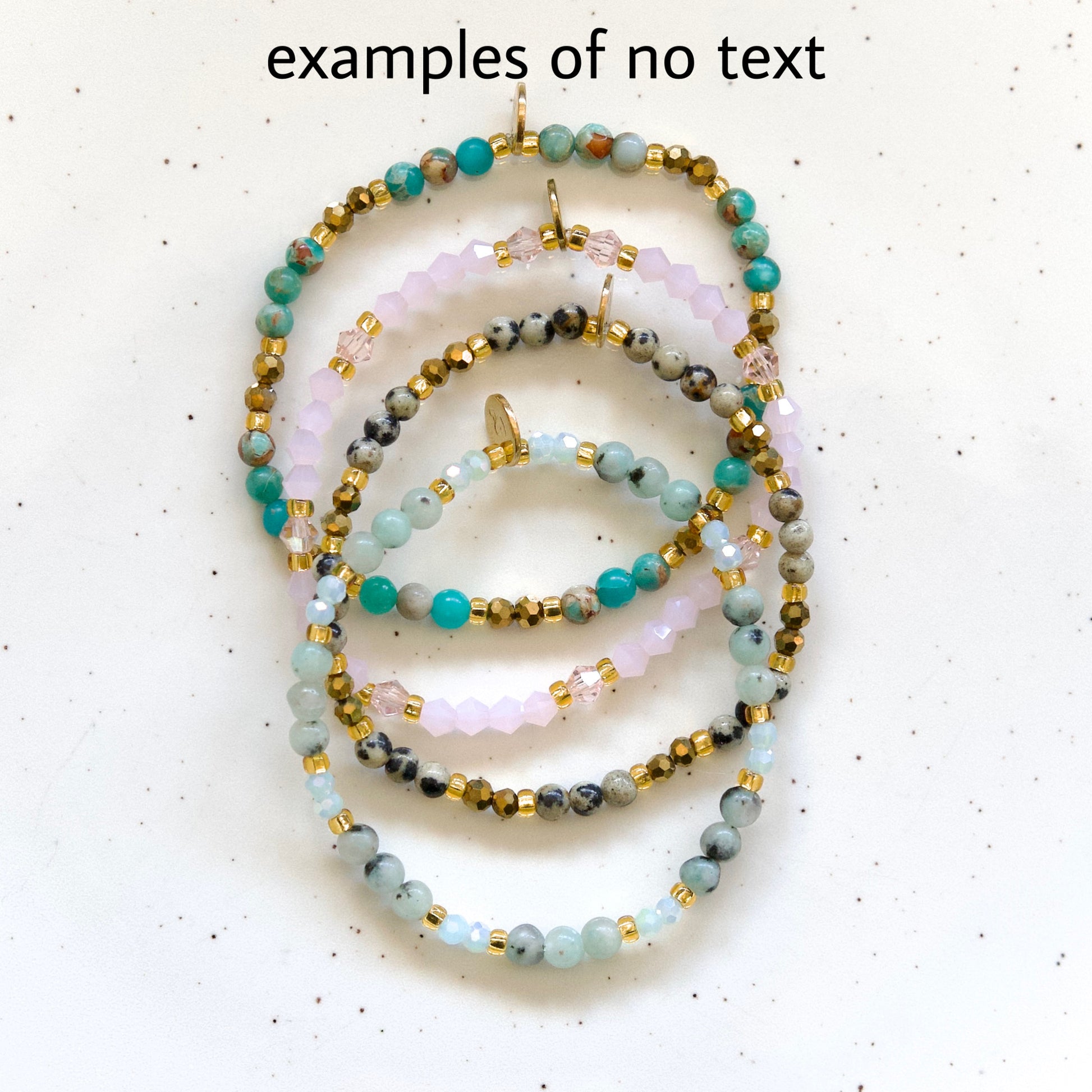 - blank text box entry will result in a gemstone only bracelet (no words)