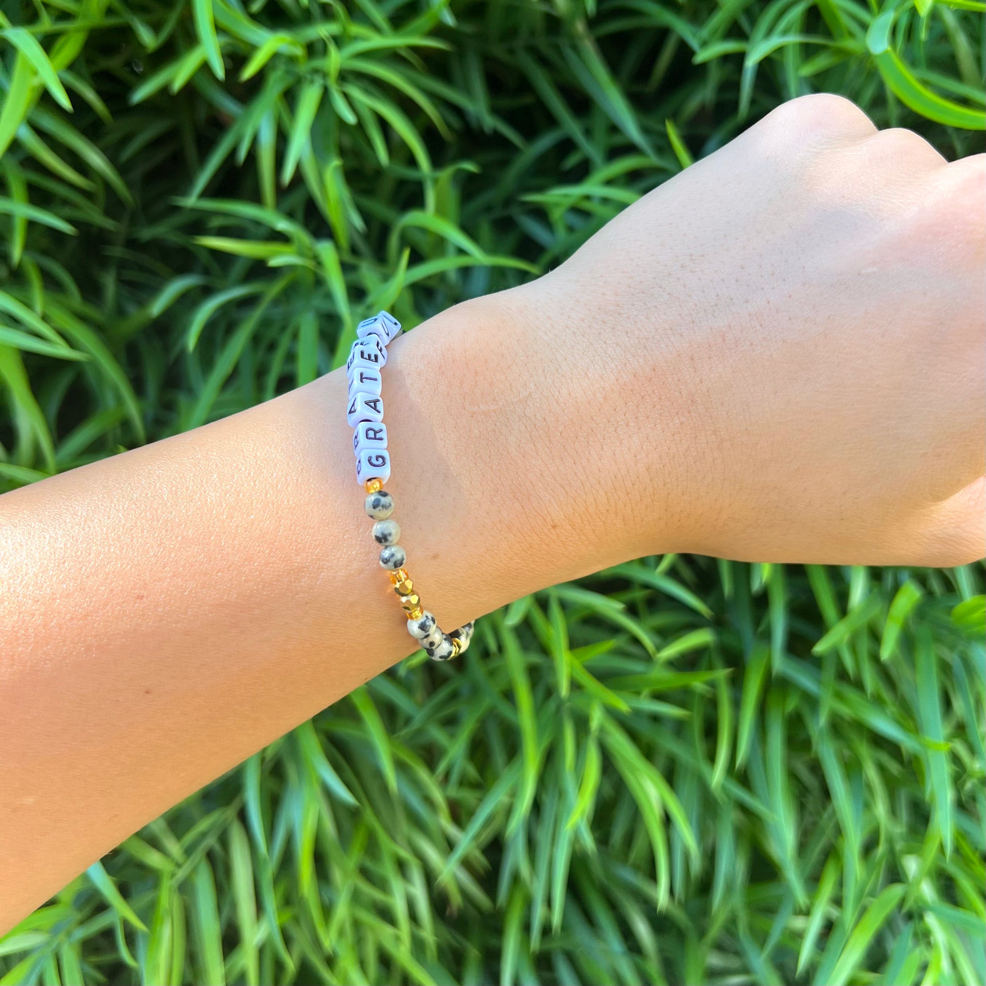 - blank text box entry will result in a gemstone only bracelet (no words)