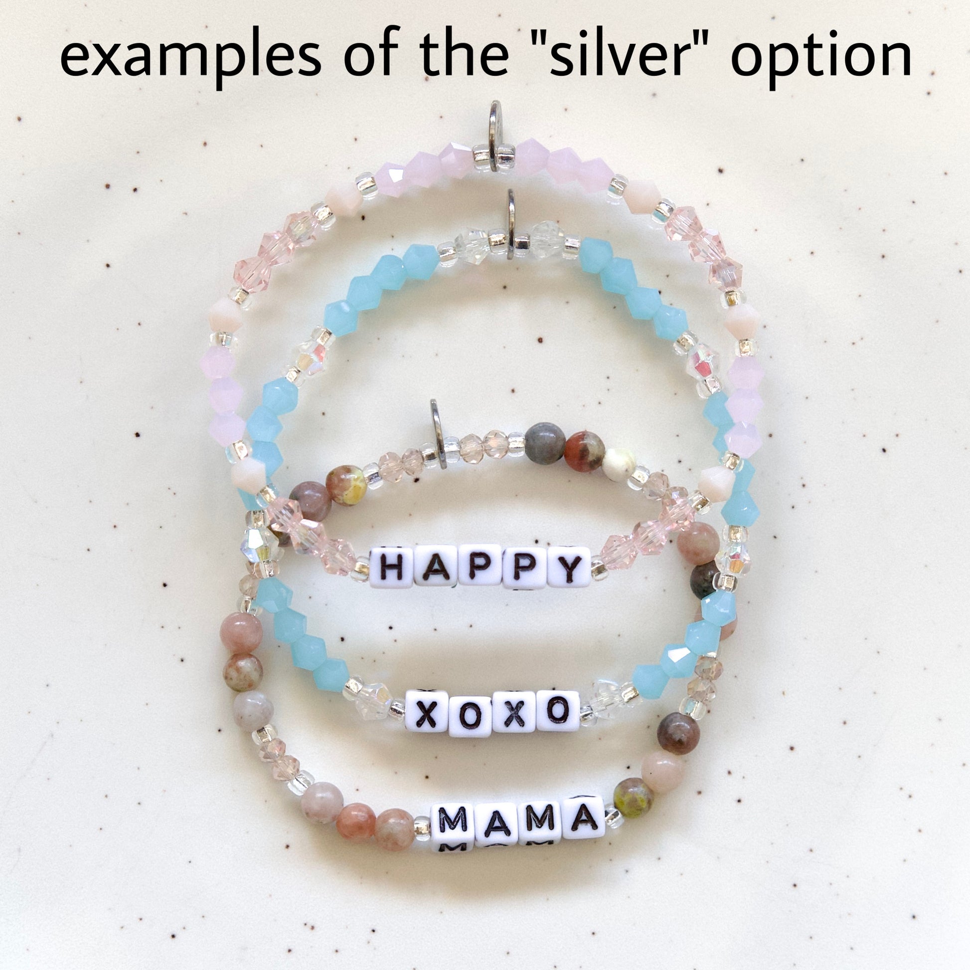 - blank text box entry will result in a gemstone only bracelet (no words)