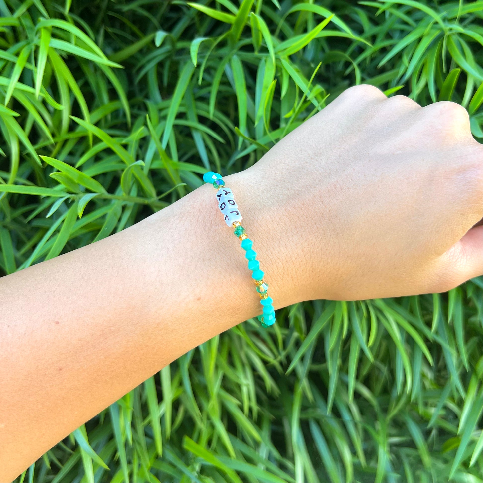 - blank text box entry will result in a gemstone only bracelet (no words)